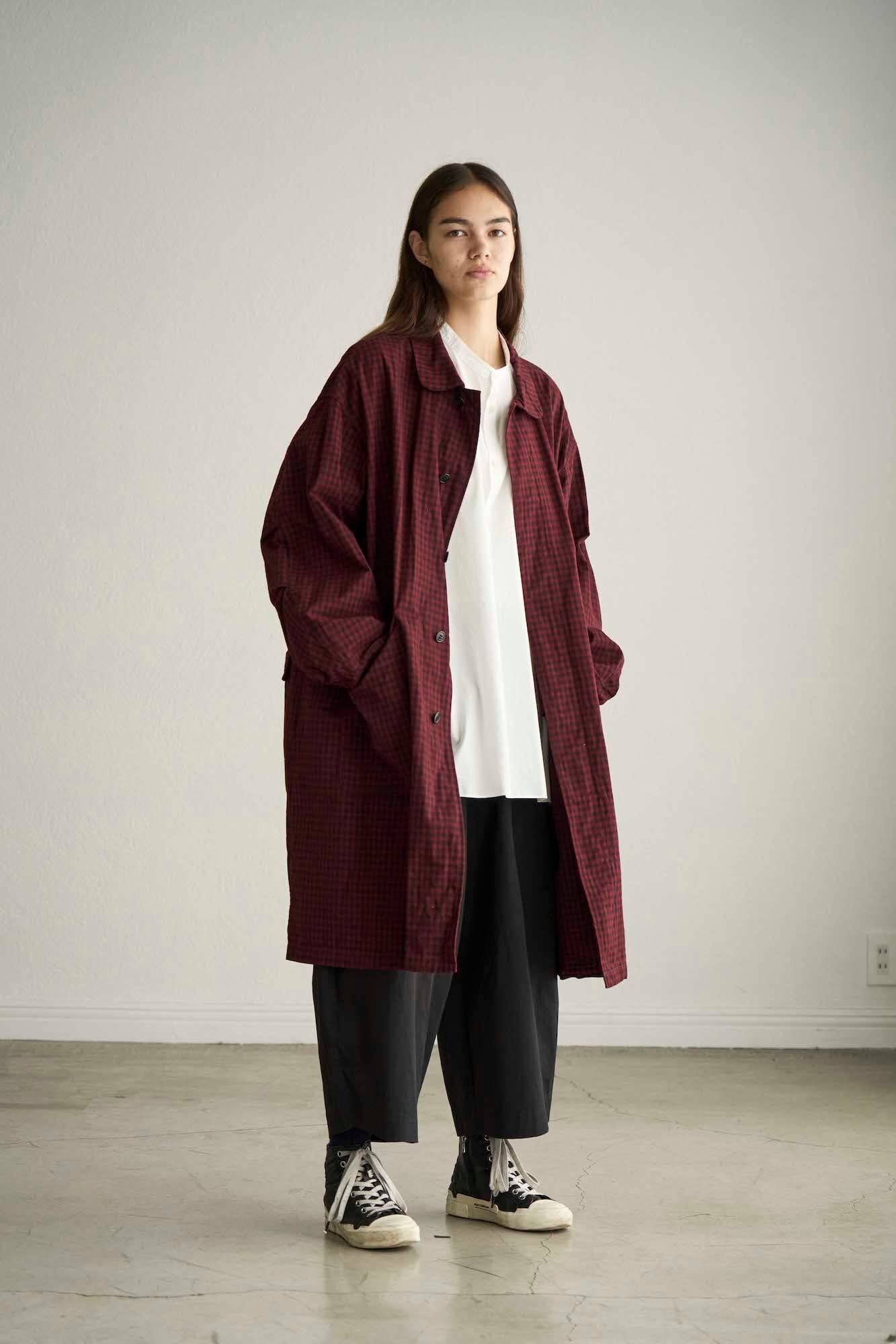 濃淡のボルドー色を組み合わせたブロックチェック柄のコットン100%オリジナル素材