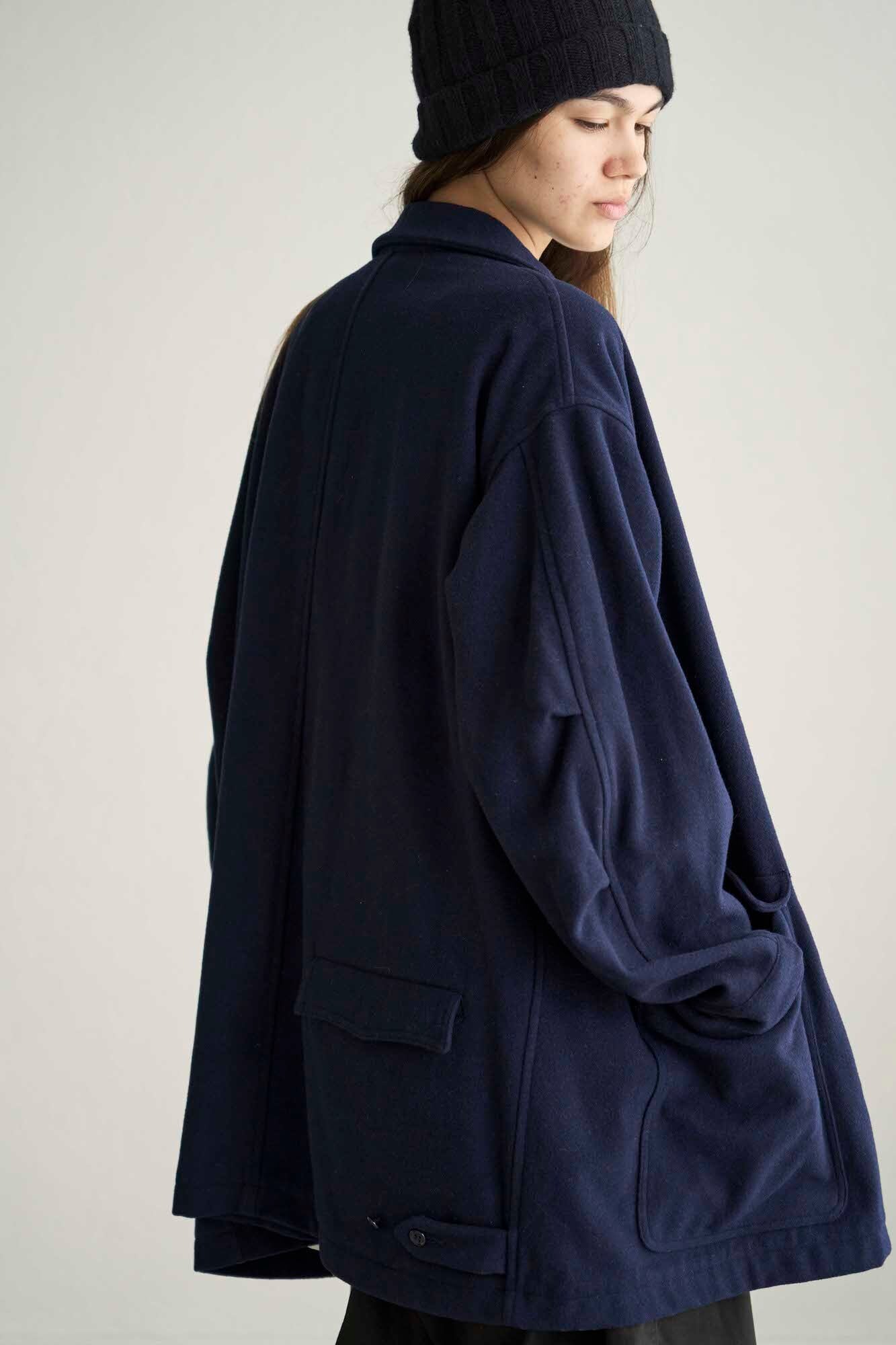 洗いのかかった1枚仕立ての軽いメルトンコート