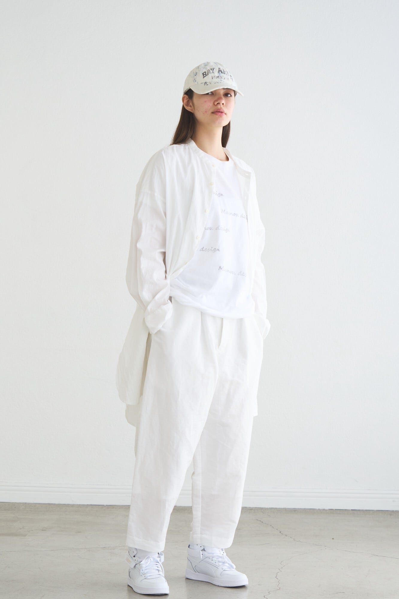 バンドカラーのロングシャツ