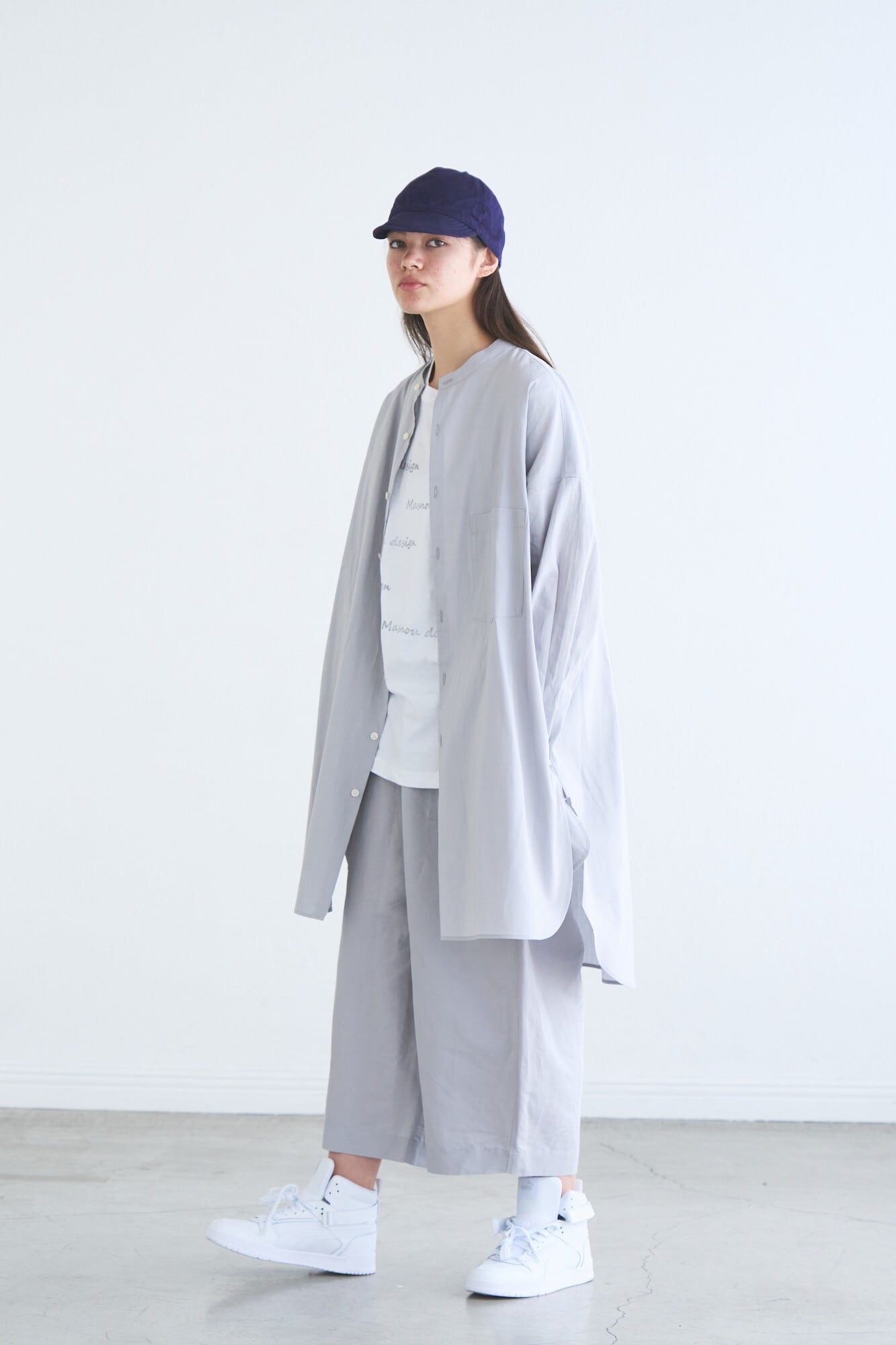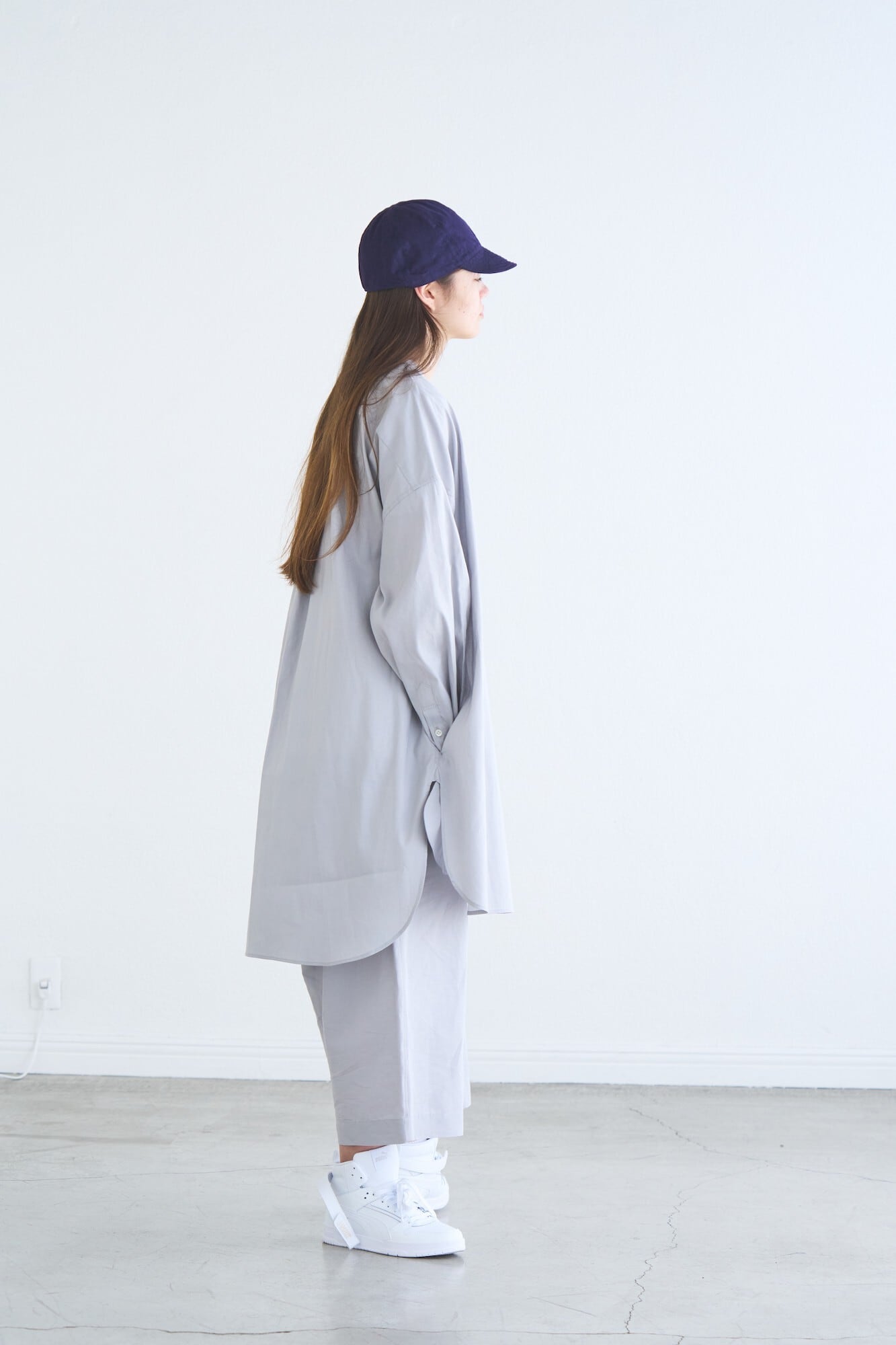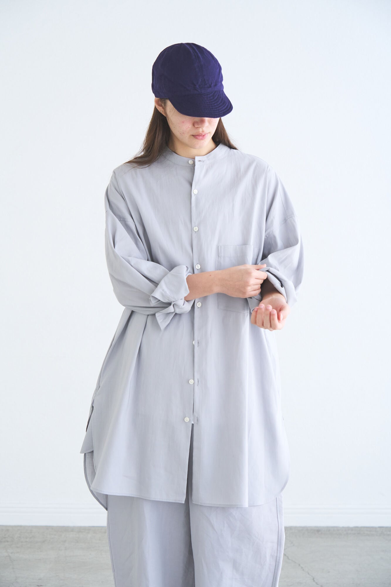 バンドカラーのロングシャツ